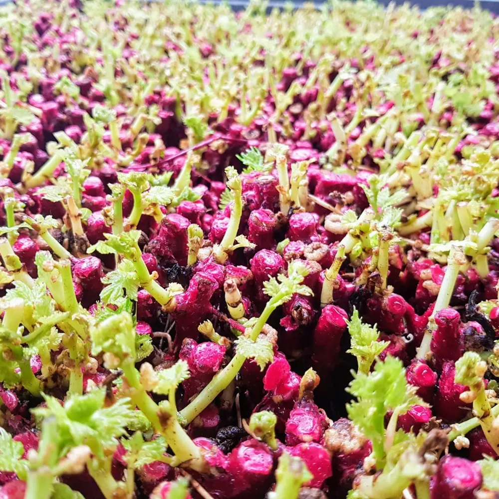 - El consumo por esqueje es de 0.8 gr, es decir un saco de 20 kg rinde aproximadamente 25000 esquejes.