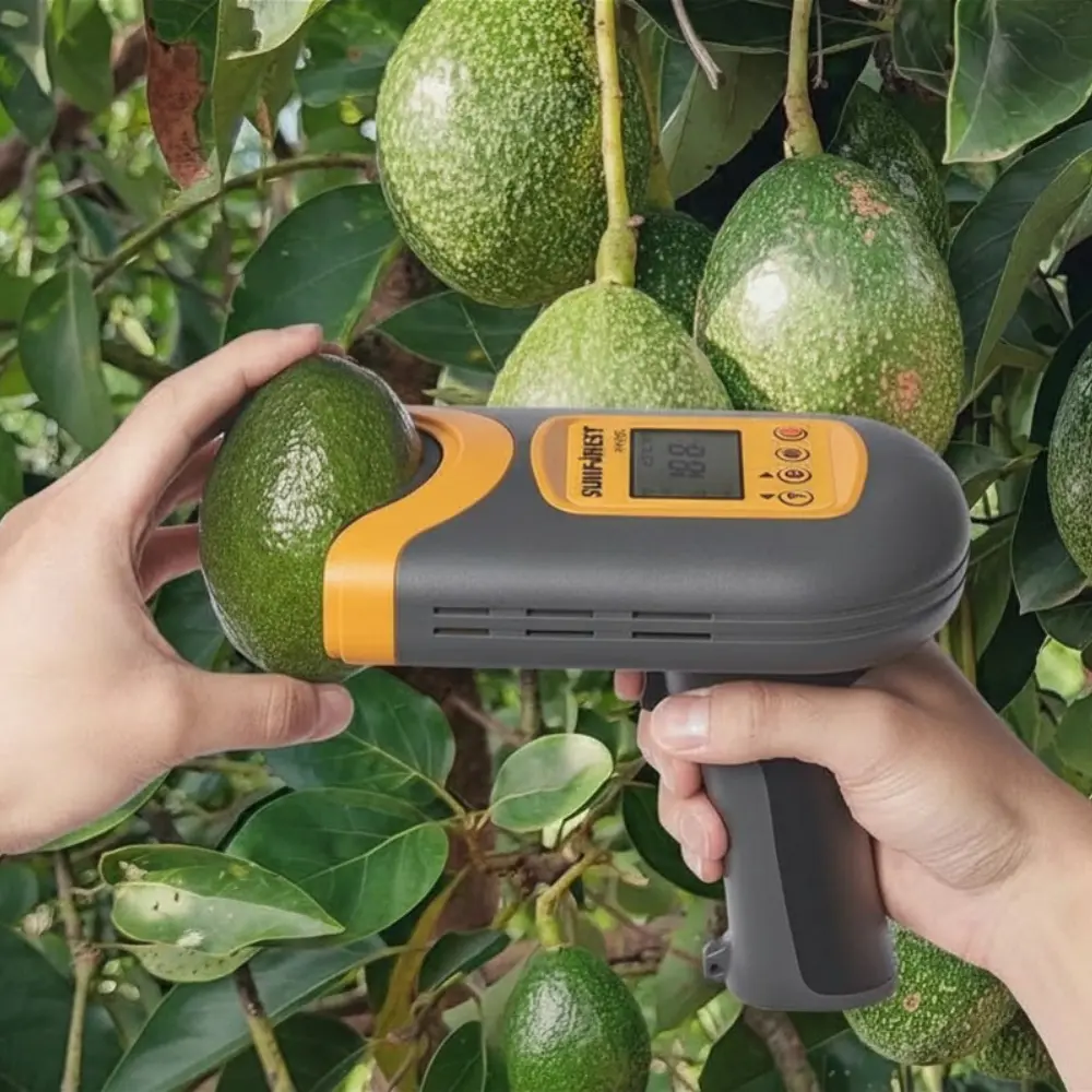 Los medidores serie H-100 son espectrómetros portátiles basados en tecnología NIR (infrarrojo cercano), diseñados para evaluar de forma rápida y no destructiva la calidad interna de frutas. Permiten medir el contenido de materia seca (Dry Matter) sin dañar la muestra, facilitando evaluaciones directamente en campo. Son una herramienta confiable para productores, exportadores y áreas de control de calidad, ayudando a determinar el punto óptimo de cosecha y asegurar la uniformidad del producto destinado a mercado fresco.